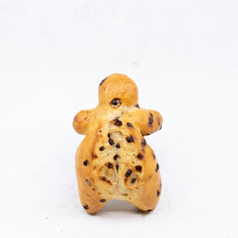 Weizenmehl, Vollei, Wasser, Käsereibutter, Eigelb, Schokoladentropfen dunkel (Zucker, Kakaomasse, Kakaobutter, Dextrose, Emulgator (Sojalecithin)), Schokoladentropfen Milch (natürliches Vanille-Aroma, Zucker, Vollmilchpulver, Kakaobutter, Kakaomasse, Molkenpulver, Magermilchpulver, Emulgator (Sojalecithin)), Travite E (Buttermilchpulver, MOLKEPULVER, Dextrose, Laktose.), Speisesalz jodiert, Trockenvorteig (Weizenmehl, Roggenmehl), Backmittel (Enzyme), Backmalz flüssig (Gerstenmalz, Gerste, Wasser, Dextrose), Backhefe, Sultaninen